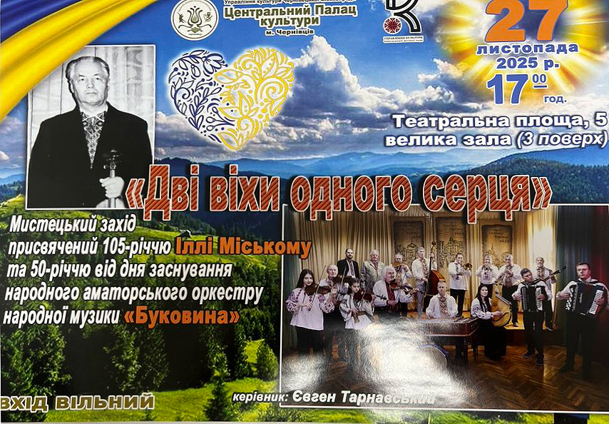 Профспілковий комітет запрошує вшанувати мистецький захід наших земляків – аматорського оркестру народної музики “Буковина”.